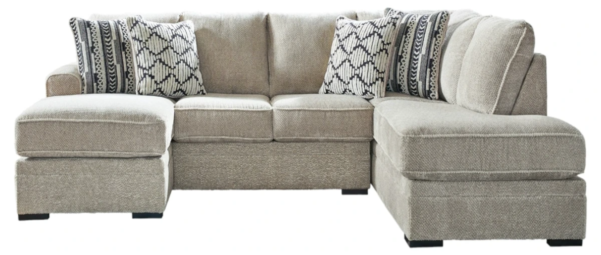 This sectional caters to your need for contemporary comfort. It’s decked out in feel-good fabric in a versatile hue. Family-friendly and ideal for hosts with the most, two chaises give more people the space the sprawl out. Quality time has never been so cozy.Read More