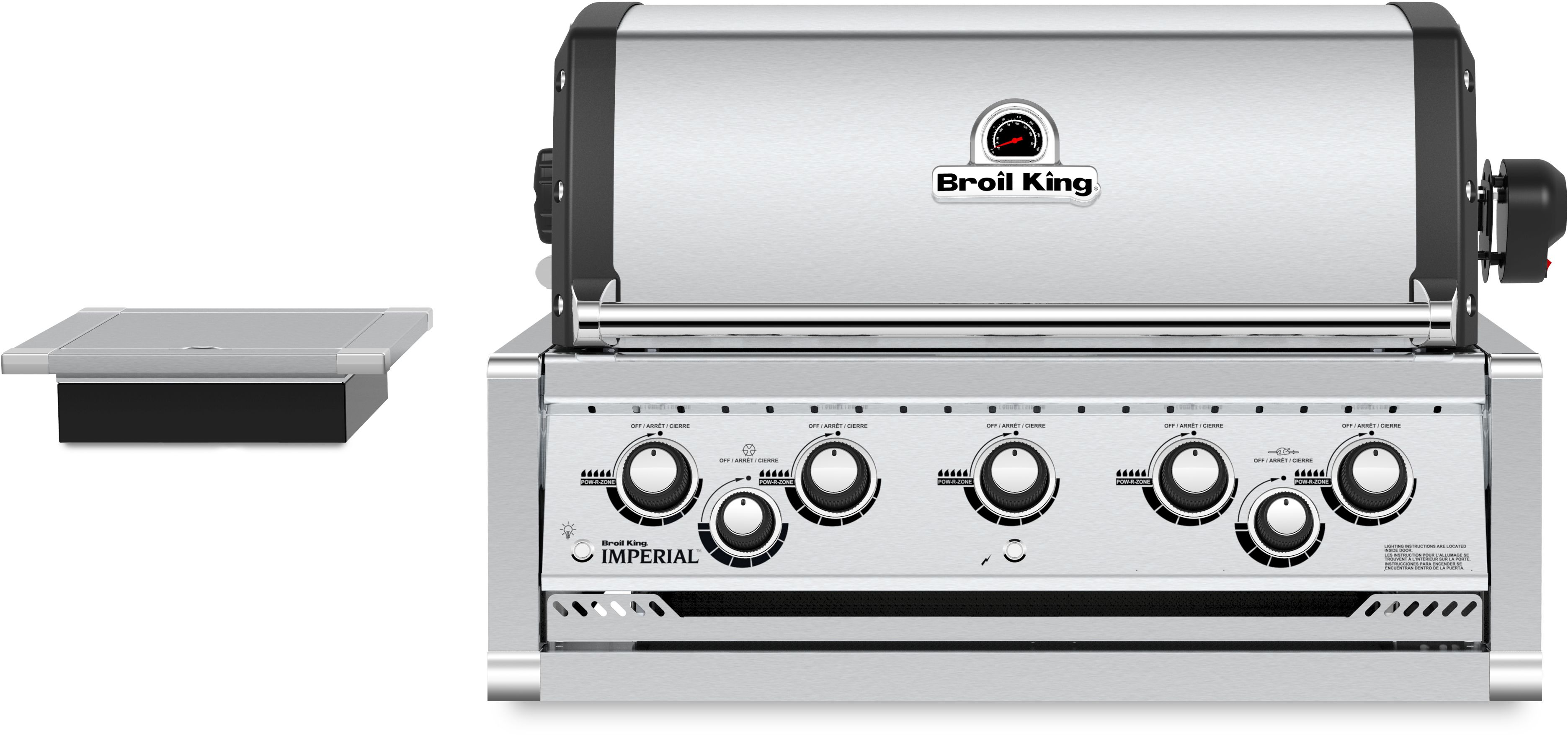 The Broil King® Imperial S 590 Built-In Grill Head features 625 sq. in of primary cooking surface and includes 5 stainless steel Dual-Tube burners, 5 professional cast stainless steel cooking grids, warming rack, stainless steel Flav-R-Wave cooking system, electronic igniter, oven lights, illuminated control knobs and stainless steel ignition switch.Read More