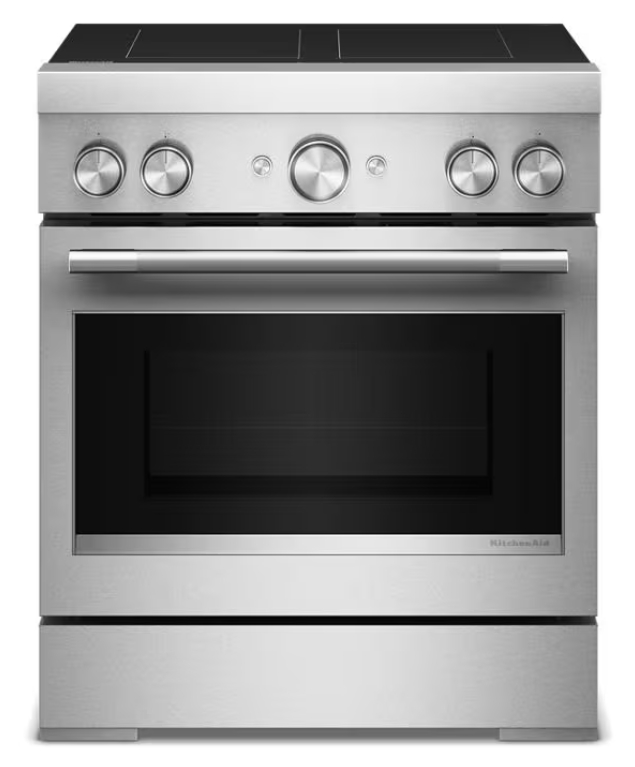 This KitchenAid® 4.1 cu. ft. 30-inch 4-Element Induction Slide-In Convection Range combines the precision of induction with the power of Air Fry. Sensor-induction cooktop generates heat directly within cookware, and the oven features Even-Heat™ True Convection plus air fry mode that aids in crisping and browning.Read More