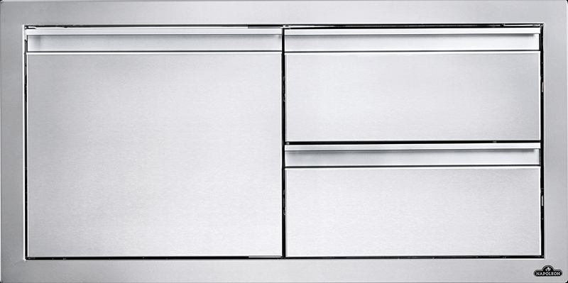 Creating your own custom grill island has never been easier with Napoleon's Built-In Components. Every great outdoor kitchen needs storage; this 36" x 16" built-in component has everything you need for storage. Featuring two generous drawers and a single large door for storage. The stainless steel construction, soft closing hardware, seamless trim, and anodized aluminum handles provide durability and endless installation possibilities.