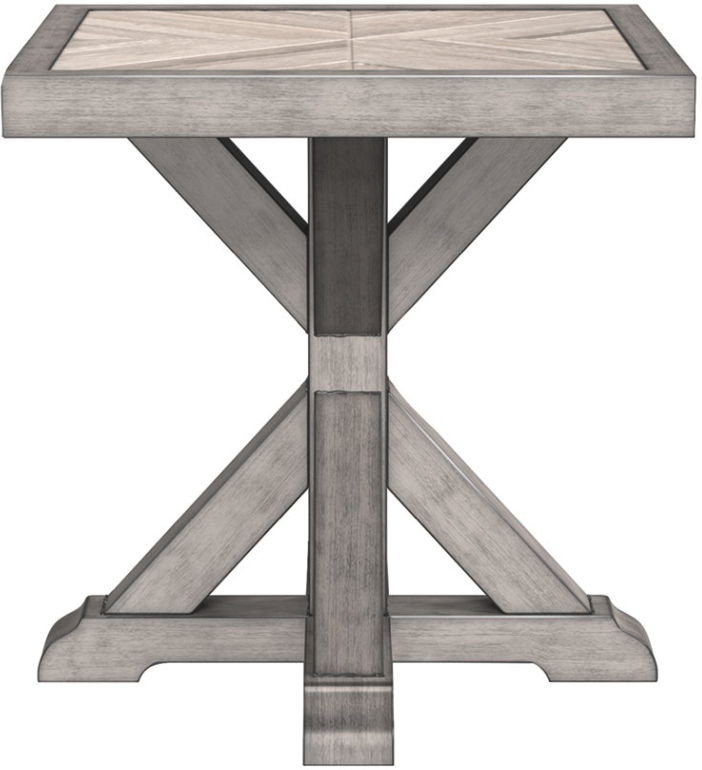 The Beachcroft square end table features a stylish, weather-resistant porcelain tabletop and double X-leg base design. Perfect for your summer drinks, midday reads, or a fitting place to display seasonal plants.