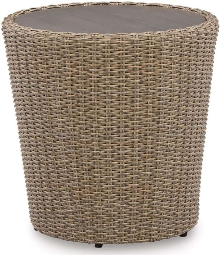 This end table completes your outdoor seating area with its fresh take on casual comfort. Handwoven resin wicker over a curving frame balances streamlined style and exceptional durability. An aluminum top polishes off the piece, acting as a perfect perch for snacks, beverages and decor.Read More