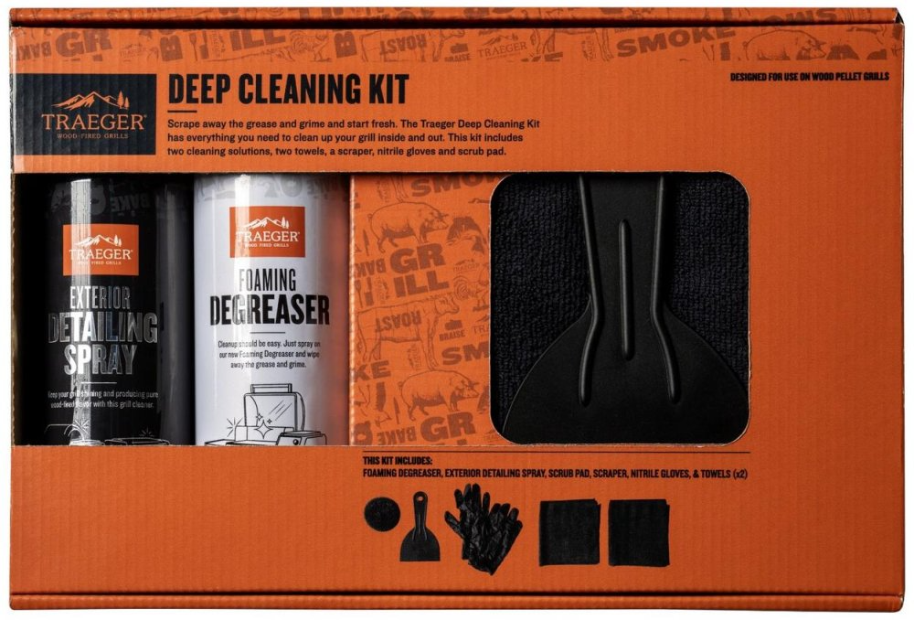 Give your grill a fresh start with the Traeger Deep Cleaning Kit. This complete cleaning set has everything you need to help eliminate grease and grime and get your grill sparkling inside and out. Designed for use on wood pellet grills.Read More